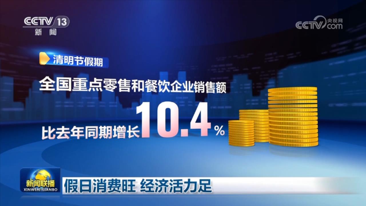 商務部商務大數(shù)據(jù)監(jiān)測顯示,清明節(jié)假期,全國重點零售和餐飲企業(yè)銷售額比去年同期增長10.4%。商品消費方面,綠色有機食品、服裝、家電、通訊器材等銷售額同比增長都超過10%,全國示范步行街客流量和銷售額同比增長也都超過五成。