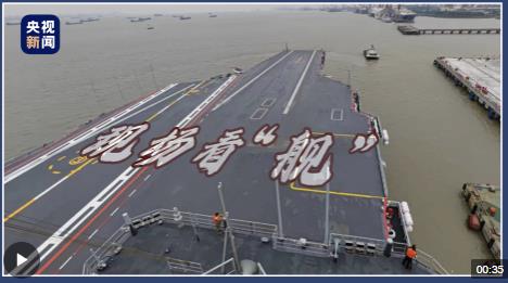 我國(guó)第三艘航空母艦福建艦在多艘拖船的牽引下,正在緩緩地駛離上海江南造船廠的碼頭,赴相關(guān)海域開(kāi)展首次航行試驗(yàn)。