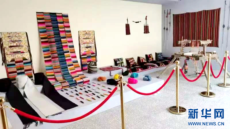 ??這是西藏非物質(zhì)文化遺產(chǎn)博物館展示的藏族邦典、卡墊織造技藝作品。(受訪者供圖)