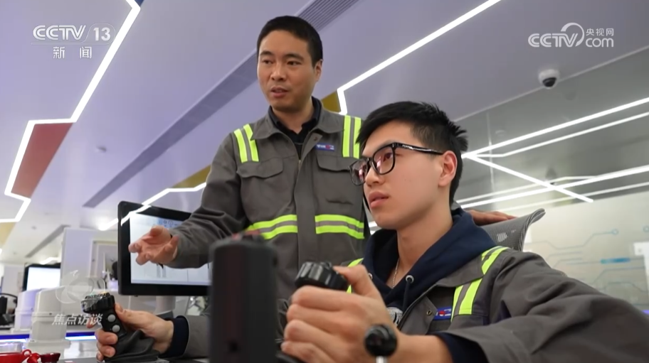 寧波舟山港穿山港區(qū)橋吊班大班長竺士杰:“攝像頭現(xiàn)場攝錄到我們看到是有時間差的,這個對傳統(tǒng)司機轉(zhuǎn)型到遠控去操作,固有的操作思維的運用,等于說是所見非所得?!?/p>