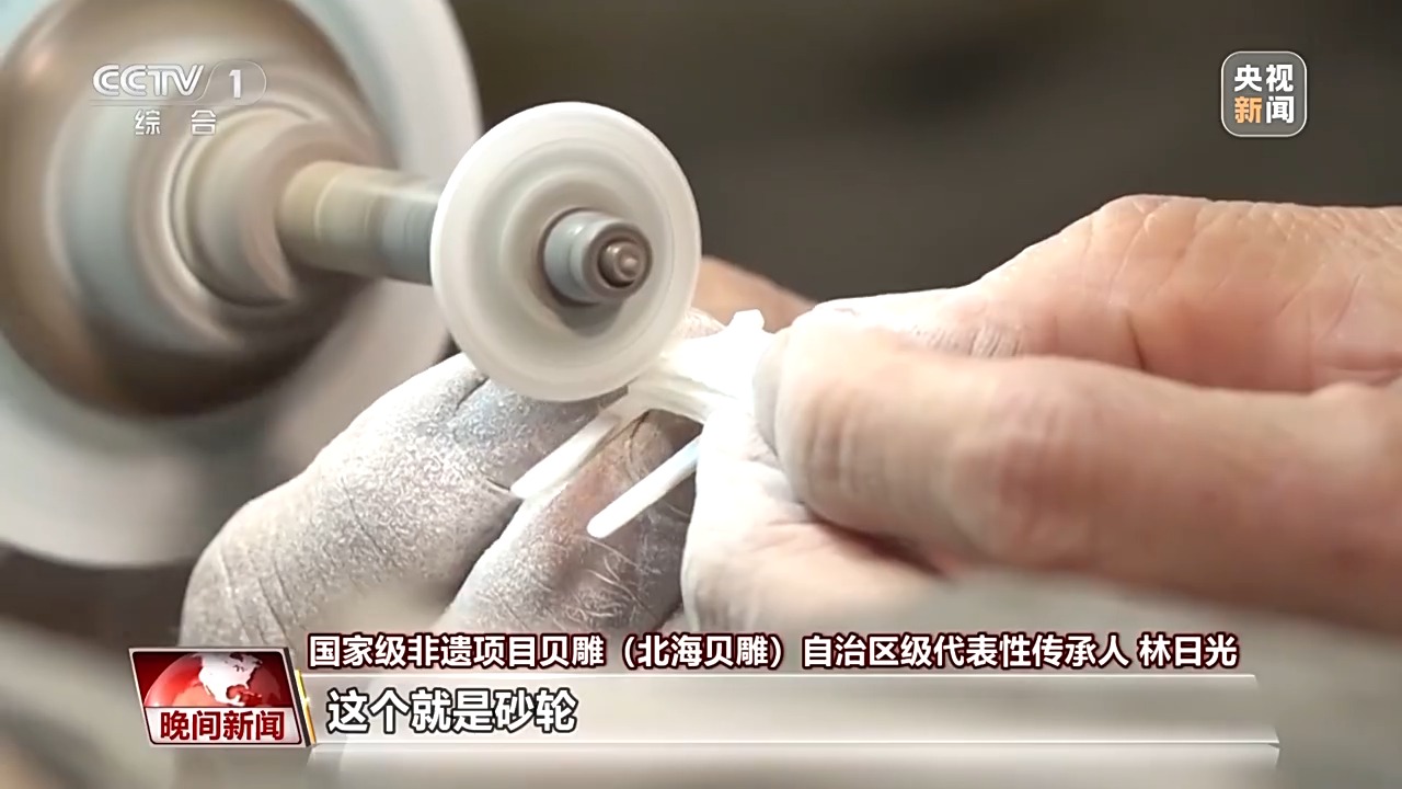 如切如磋,如琢如磨。廣西北海貝雕,以工藝精湛著稱,一件貝雕作品往往歷經(jīng)構(gòu)圖、白描、磨型、雕琢、拋光等多道工序。從藝五十年的林師傅說,制作貝雕,最重要的工具是砂輪。