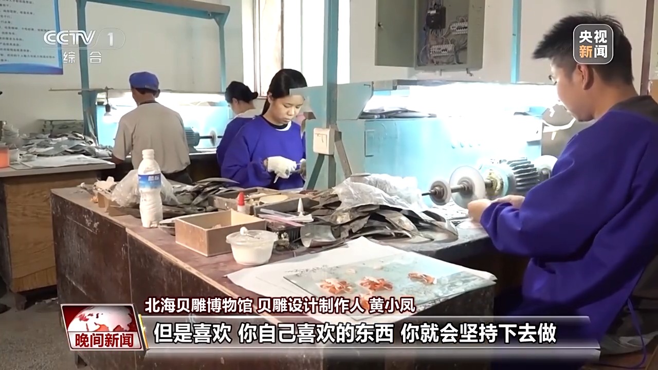 北海貝雕博物館貝雕設(shè)計(jì)制作人 黃小鳳:剛開始的時(shí)候?qū)W的話也比較容易受傷,但是喜歡,你自己喜歡的東西,你就會(huì)堅(jiān)持下去做。