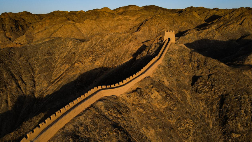 甘肅省嘉峪關(guān)市拍攝的懸壁長(zhǎng)城(無(wú)人機(jī)照片)。新華社記者 陳鐘昊 攝