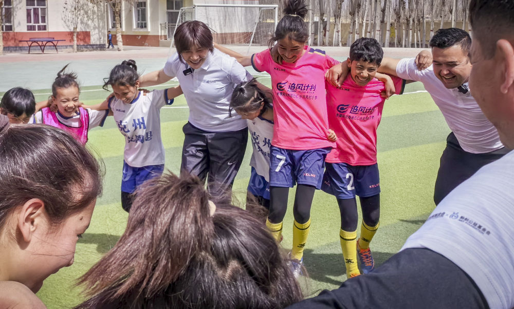 這樣的快樂,在水慶霞指導(dǎo)這次隨著“追風計劃”來到且克村小學(xué)的時候,姐姐和妹妹都感受到了。水指導(dǎo)看了她們的比賽,還見證了妹妹的兩個進球,又帶著且克村小學(xué)的女足隊員們上了一堂邊路配合的訓(xùn)練課。