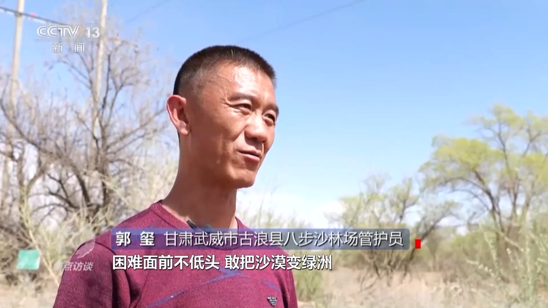 甘肅武威市古浪縣八步沙林場(chǎng)管護(hù)員 郭璽:我叫郭璽,是古浪縣八步沙林場(chǎng)第三代治沙人,我的爺爺是郭朝明,他是第一代治沙人,我的大伯郭萬剛,是第二代治沙人。