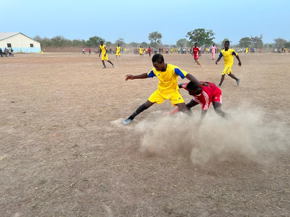 4月13日,貝寧當?shù)卮迕袂騿T正在非洲“村超”賽場上踢球。受訪者供圖