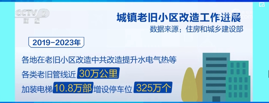 數(shù)據(jù)顯示,2019年—2023年,全國累計(jì)開工改造老舊小區(qū)22萬個(gè),惠及居民3800多萬戶、近1億人。各地在老舊小區(qū)改造中,共改造提升水電氣熱等各類老舊管線近30萬公里,加裝電梯10.8萬部,增設(shè)停車位325萬個(gè)、電動(dòng)汽車充電樁10.4萬個(gè)、電動(dòng)自行車充電樁68萬個(gè),增設(shè)養(yǎng)老托育等各類社區(qū)服務(wù)設(shè)施6.8萬個(gè)。