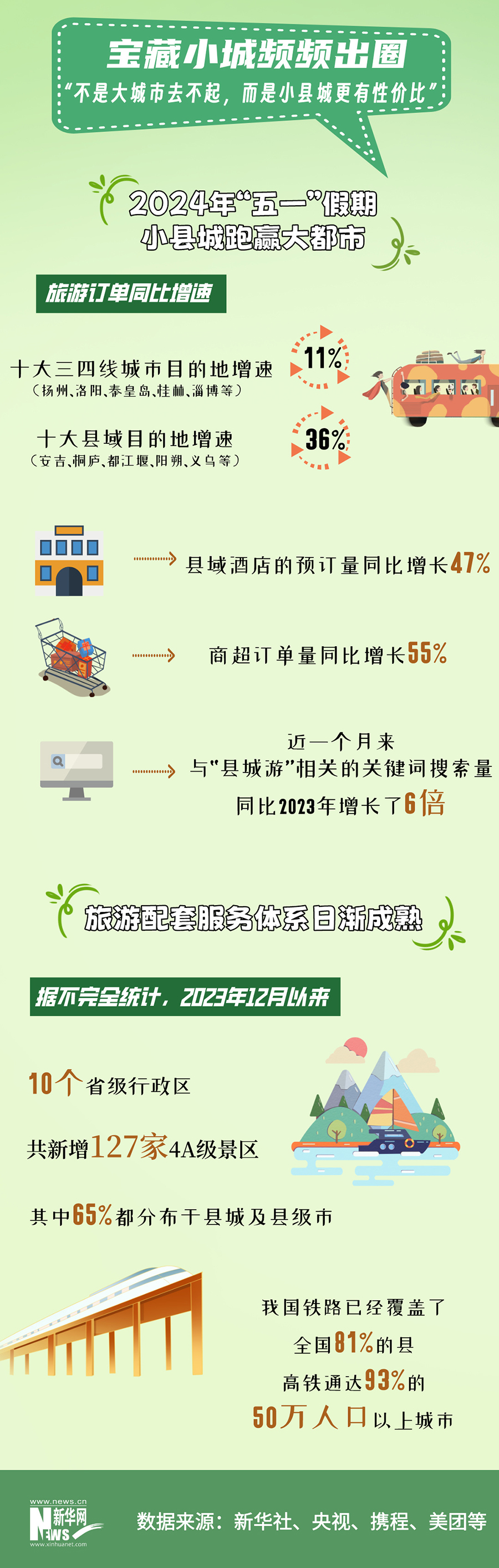 小城故事多。今年“五一”假期,熱門(mén)旅游城市和景點(diǎn)雖然依舊“人從眾”,但縣域旅游也展現(xiàn)出了極大的活力。文化和旅游部數(shù)據(jù)中心測(cè)算,縣城正在成為出游“新寵”,文旅下沉趨勢(shì)明顯。