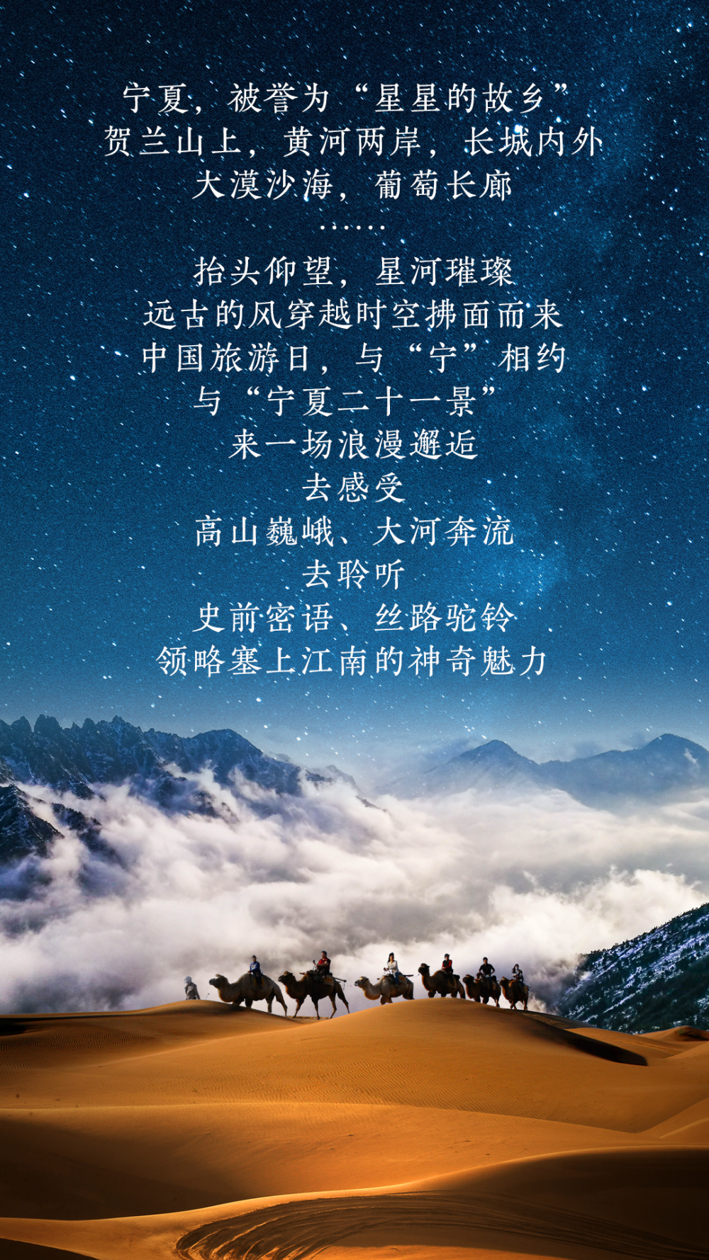 中國旅游日,與“寧”相約,打卡星星的故鄉(xiāng),與“寧夏二十一景”來一場浪漫邂逅。