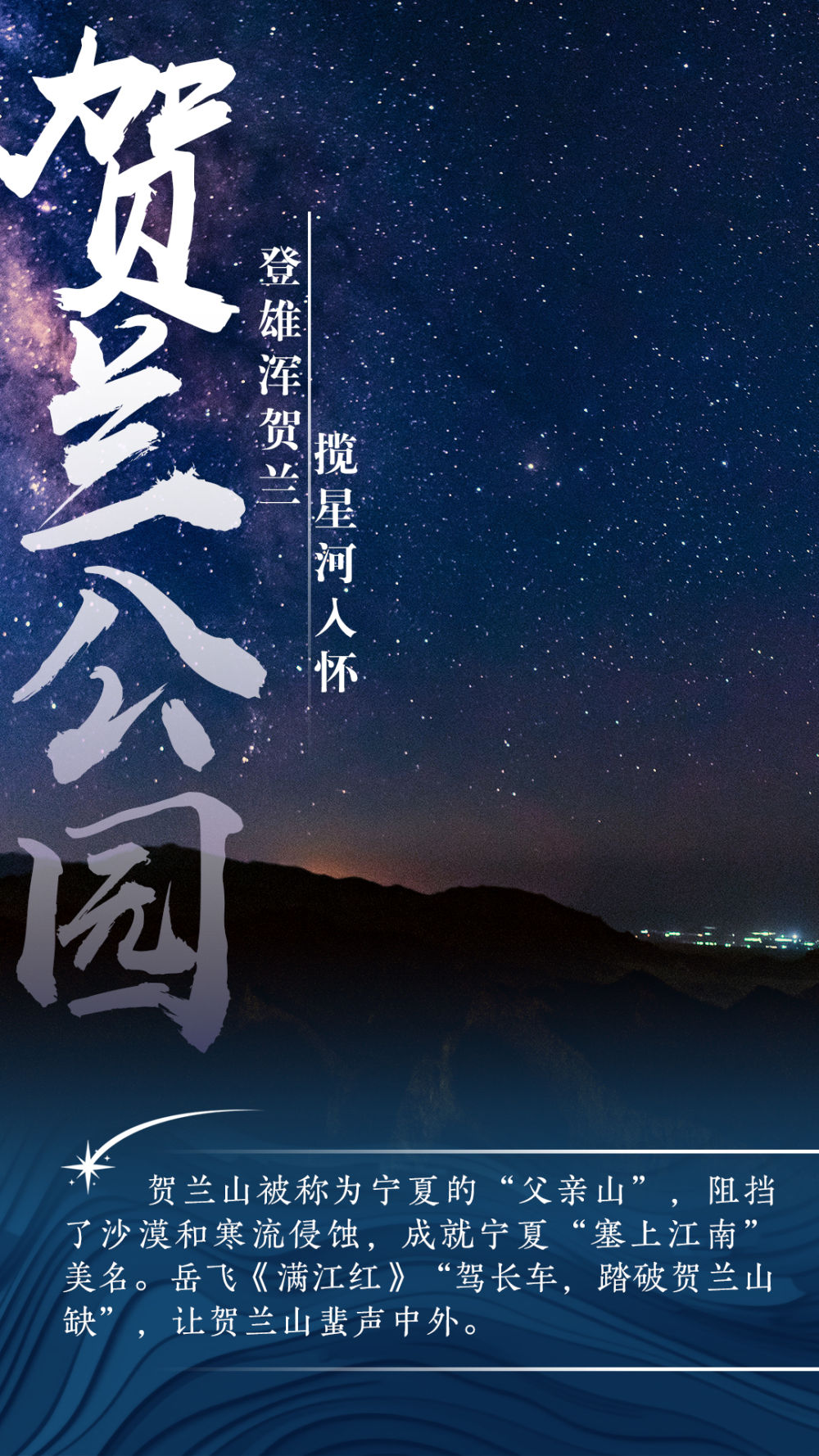 寧夏,被譽為“星星的故鄉(xiāng)”。賀蘭山上,黃河兩岸,長城內外,大漠沙海,葡萄長廊……抬頭仰望,星河璀璨,遠古的風穿越時空拂面而來。