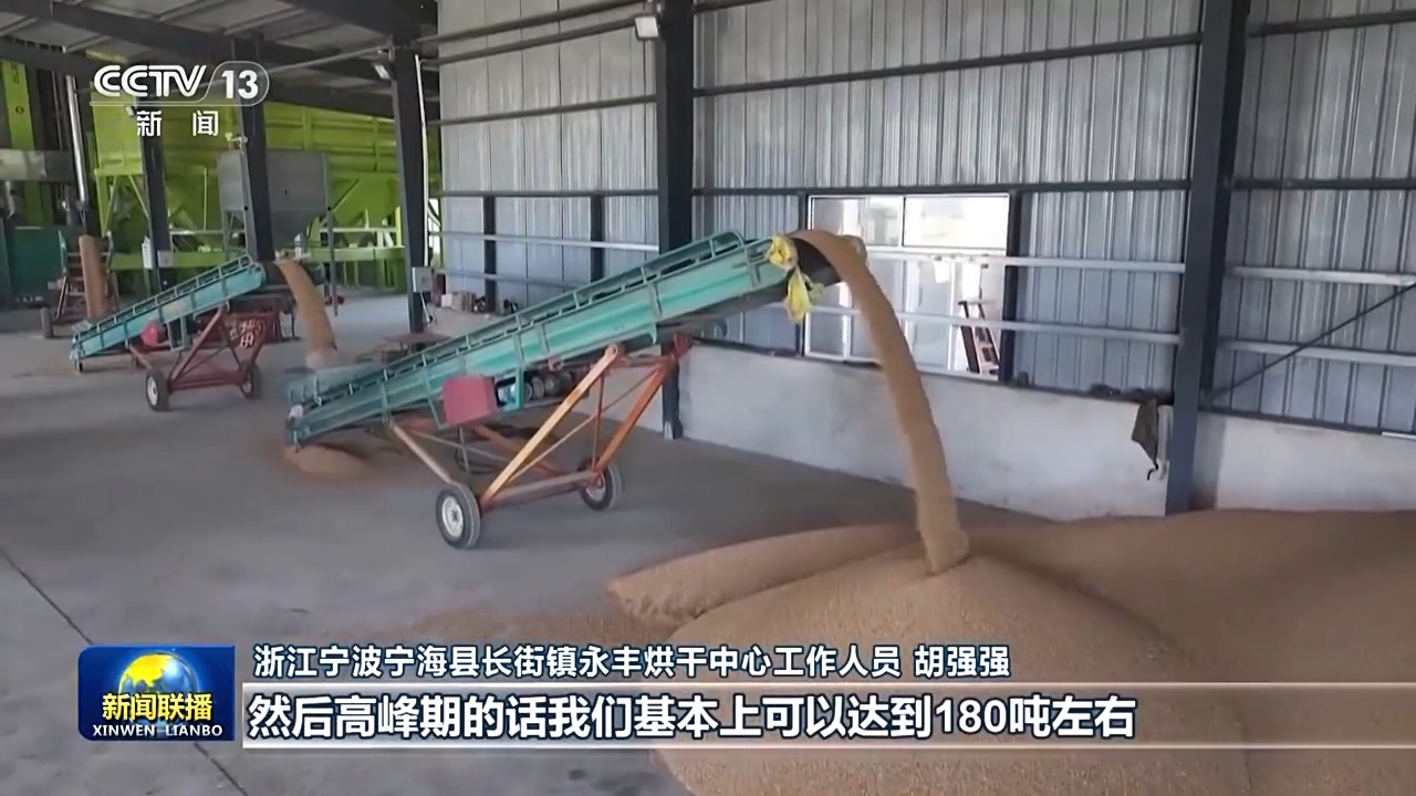 浙江寧波寧海縣長(zhǎng)街鎮(zhèn)永豐烘干中心工作人員 胡強(qiáng)強(qiáng):一天我們目前烘干量在100來(lái)噸,高峰期我們基本上可以達(dá)到180噸左右。