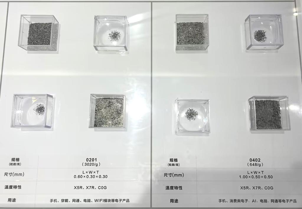 風(fēng)華高科生產(chǎn)的部分電容產(chǎn)品,用于手機(jī)、消費(fèi)類電子、AI等電子產(chǎn)品。受訪企業(yè)供圖