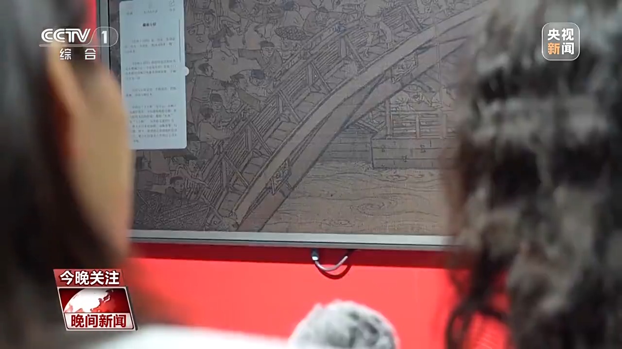 第七屆數(shù)字中國建設(shè)峰會(huì)參展商 翟芮:比如說這幅清明上河圖,采用了超高清的采集,可以把整個(gè)畫作無限放大,比如這個(gè)細(xì)節(jié)是在橋上有兩隊(duì)人馬,他們兩個(gè)起了沖突,互不相讓,周圍這些是看熱鬧的。