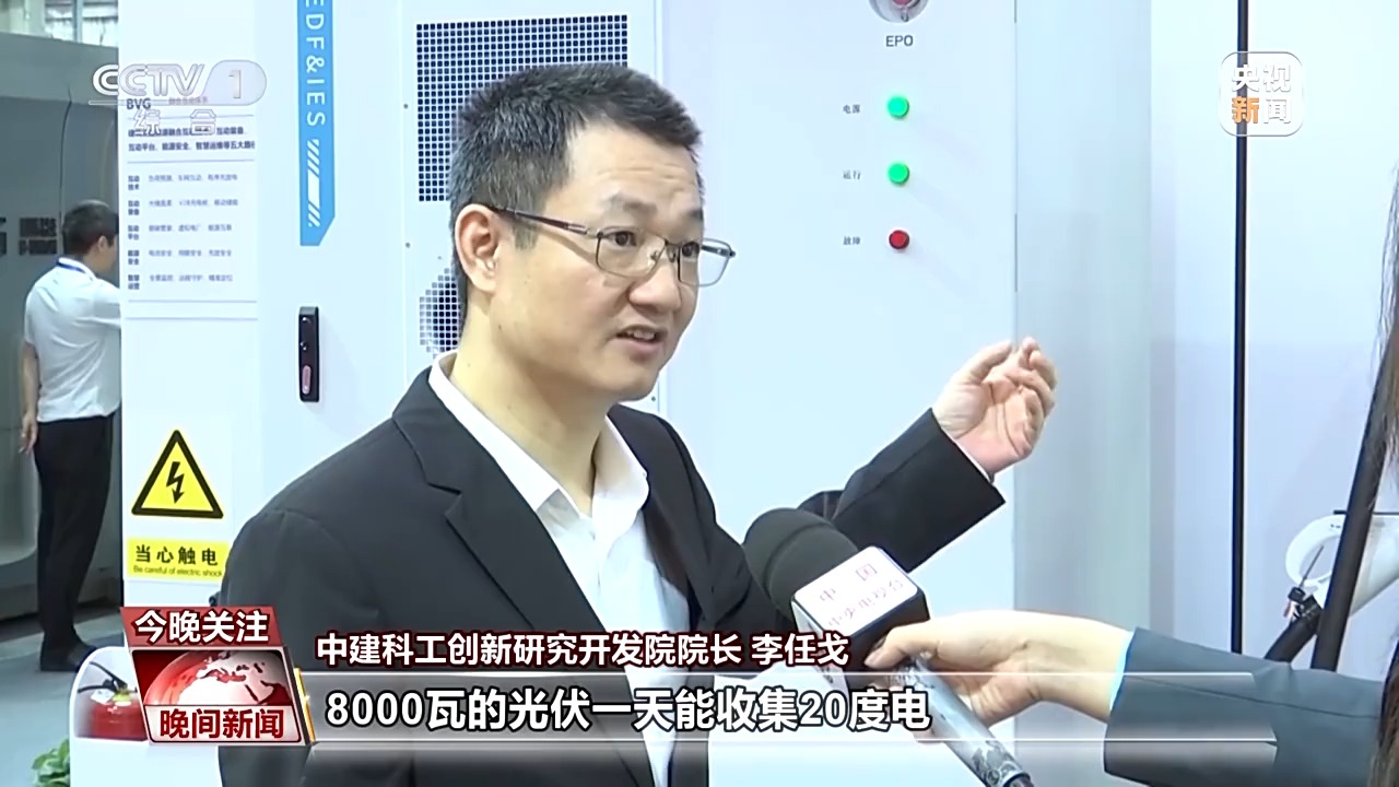 中建科工創(chuàng)新研究開發(fā)院院長 李任戈:我們屋頂裝了8000瓦的光伏,一天能收集20度的電,我們這輛汽車充滿是100度電,我們反過來放電的時(shí)候,我們這輛汽車能夠供這個(gè)房子一個(gè)星期使用的電量。