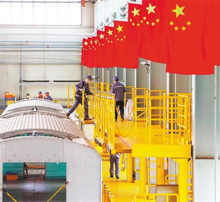▲5月28日,中車長(zhǎng)客國(guó)鐵事業(yè)部制造中心裝配產(chǎn)線組,員工在忙生產(chǎn)。