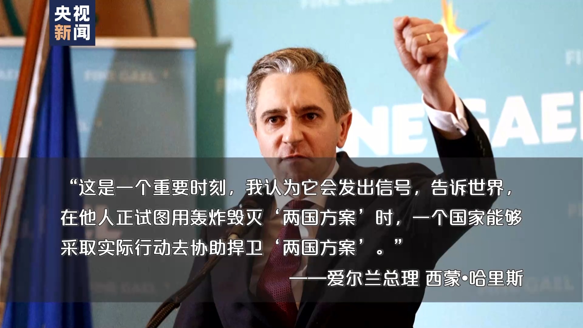 “這是一個重要時刻,我認為它會發(fā)出信號,告訴世界,在他人正試圖用轟炸毀滅‘兩國方案’時,一個國家能夠采取實際行動去協(xié)助捍衛(wèi)‘兩國方案’。”——愛爾蘭總理 西蒙·哈里斯