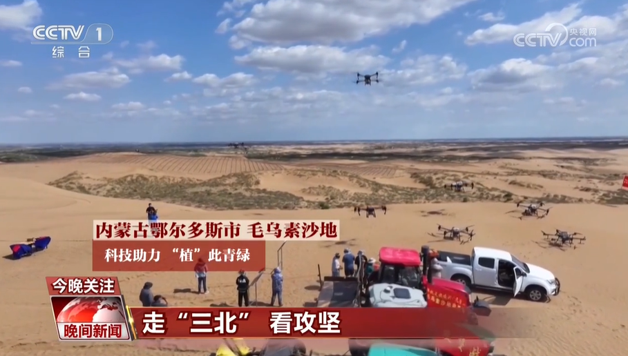 在內(nèi)蒙古毛烏素沙地,無人機(jī)飛播、機(jī)器人栽種正當(dāng)時(shí),科技助力“植”此青綠。