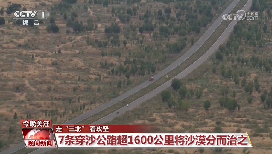那要如何提高沙漠的治理效率呢?在鎖邊林的中間,這一條條穿越沙漠的公路,叫做穿沙公路,在庫布其,一共有7條,全長超過1600公里的穿沙公路,人流、物流通過公路進(jìn)入沙漠深處,而蓬勃綠色也隨著公路向外延伸。