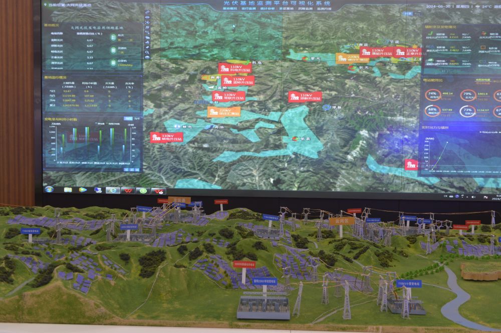 5月29日,記者拍攝的大同光伏發(fā)電監(jiān)測服務(wù)中心的可視化系統(tǒng)。(新華社記者劉力航 攝)