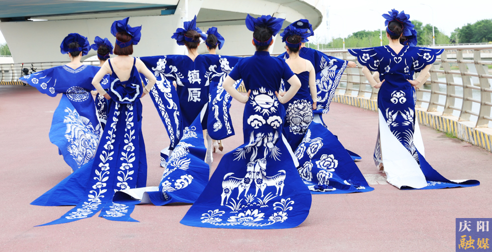 6月4日,慶陽融媒主播身著由鎮(zhèn)原縣文化館館長常燕創(chuàng)意設(shè)計(jì)的“剪云裳”慶陽剪紙系列服裝驚艷亮相。其中,“青花瓷”系列作品為全國全網(wǎng)首秀。