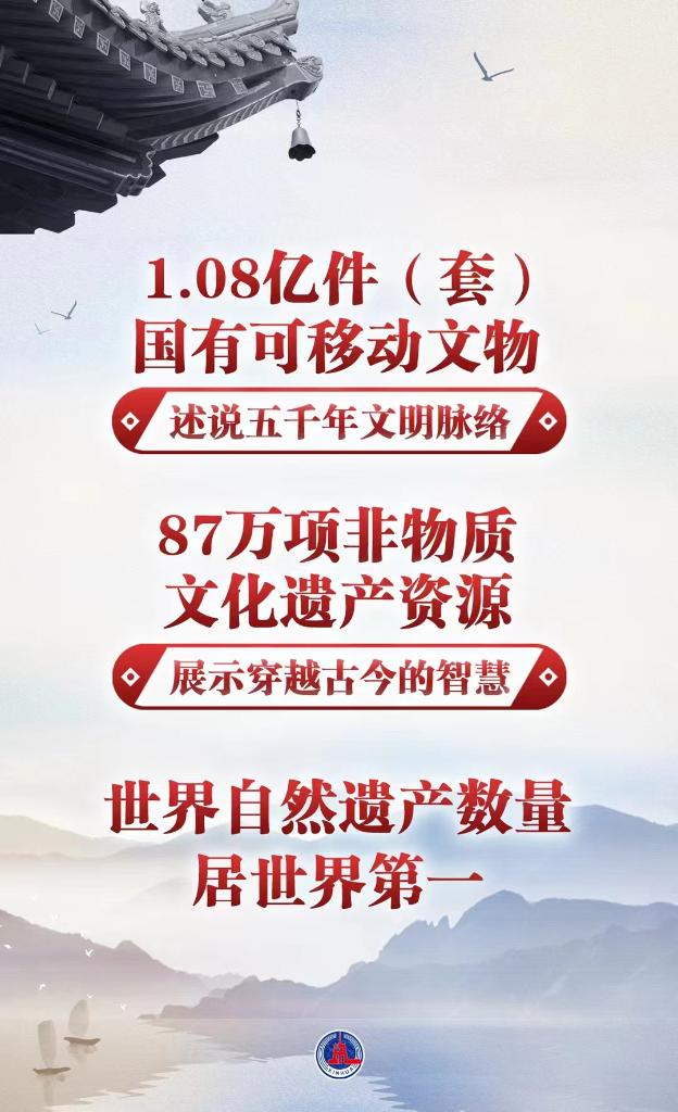 1.08億件(套)國(guó)有可移動(dòng)文物述說(shuō)五千年文明脈絡(luò),87萬(wàn)項(xiàng)非物質(zhì)文化遺產(chǎn)資源展示穿越古今的智慧,世界自然遺產(chǎn)數(shù)量居世界第一……文化和自然遺產(chǎn)濃縮著中華文明發(fā)展和自然演進(jìn)的珍貴成果。