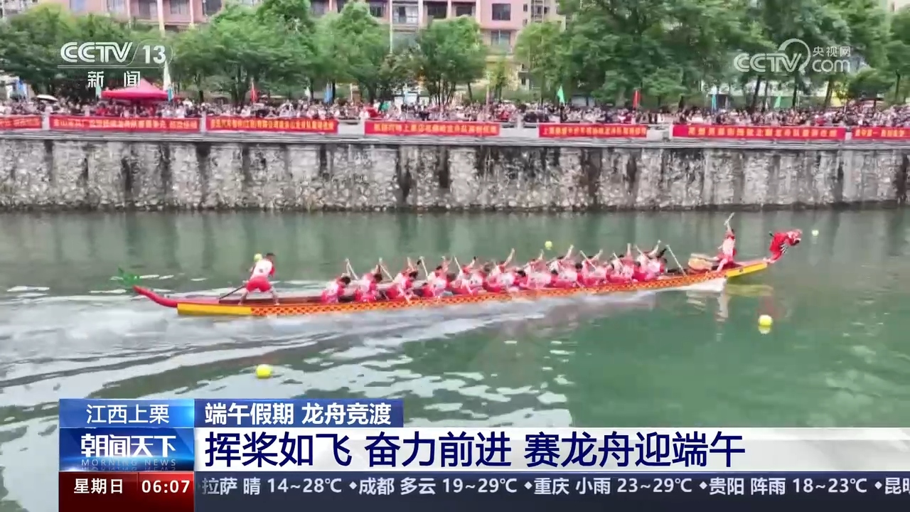 在江西,當(dāng)?shù)匾才e辦了端午龍舟賽,為群眾營(yíng)造出濃厚的節(jié)日氣氛。