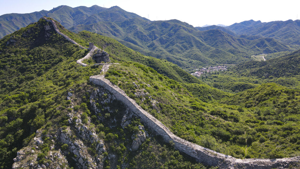 石峽關(guān)長城和長城腳下的石峽村(2024年6月1日攝,無人機(jī)照片)。新華社記者 陳鐘昊 攝