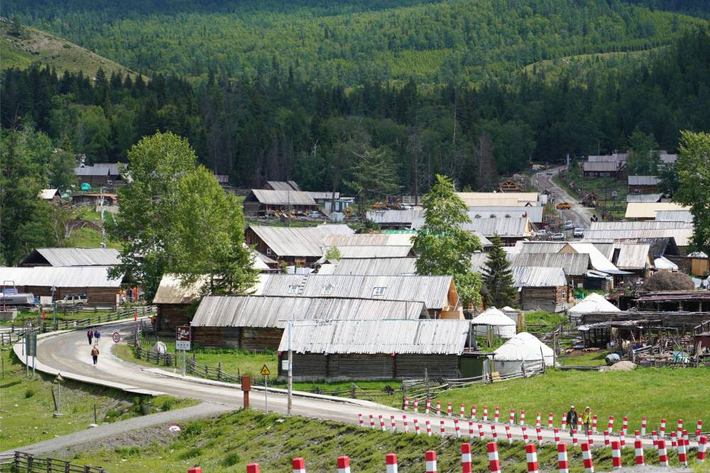 初夏午后,阿爾泰山蒼翠欲滴,牛羊成群。新疆哈巴河縣齊巴爾鎮(zhèn)吉林新村人頭攢動,來自五湖四海的游客走進電視劇《我的阿勒泰》拍攝地,尋找“詩與遠方”。