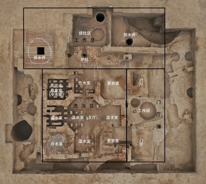 唐朝墩古城大型公共浴場平面圖。(圖片由中國人民大學(xué)提供)