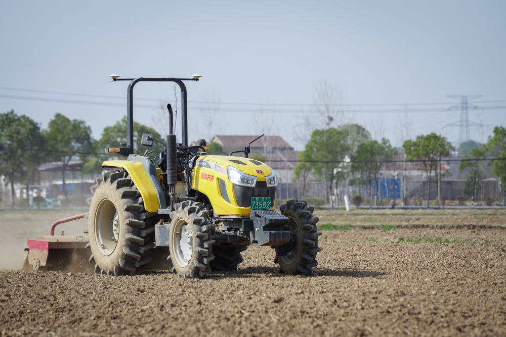 2023年3月15日,在湖北省武漢市黃陂區(qū)胡港灣村,武漢永旺農(nóng)產(chǎn)品專業(yè)合作社的無人駕駛旋耕機在運作。 新華社記者 伍志尊 攝
