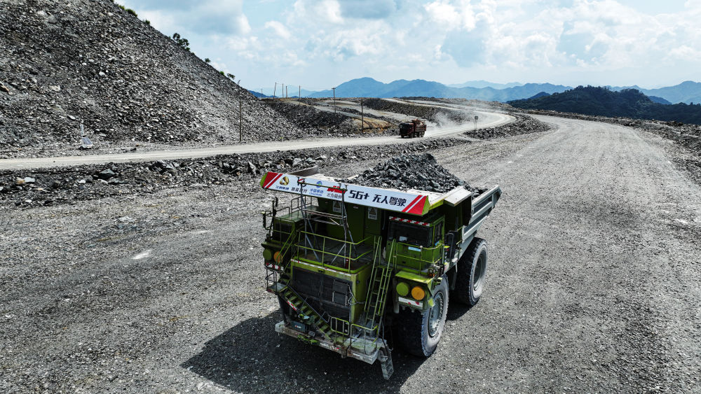 這是江銅集團(tuán)德興銅礦5G智能采礦運輸作業(yè)場景(2023年8月24日攝)。電動輪汽車使用“5G+無人駕駛”技術(shù)實現(xiàn)礦山運輸生產(chǎn)裝、運、卸全流程作業(yè)過程無人自主運行。 新華社發(fā) (張偉峰 攝)