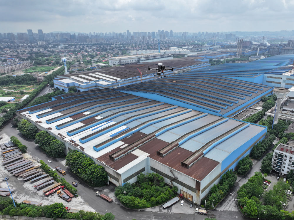 2024年6月13日,在湖南省湘潭市,無人機在湘潭鋼鐵集團(tuán)有限公司進(jìn)行智能巡檢(無人機照片)。無人機智能巡檢系統(tǒng)利用5G通信、北斗定位技術(shù)和“AI+機器視覺”等技術(shù),針對人員點檢不便的問題,對廠內(nèi)多場景進(jìn)行無人機定期智能巡檢,實現(xiàn)高爐測溫、電力絕緣端子巡檢等工作。 新華社記者 陳澤國 攝