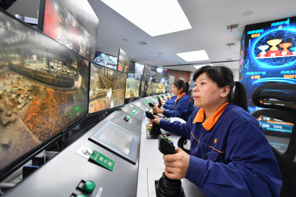 2024年6月13日,在位于湖南省湘潭市的湘潭鋼鐵集團(tuán)有限公司五米寬厚板廠智慧中心,工作人員在進(jìn)行遠(yuǎn)程行車操作。五米寬厚板廠智慧中心利用超融合、虛擬化、5G傳輸以及分布式計算和存儲等技術(shù),將五米板煉鋼、軋鋼和熱處理全工序的控制和二級、三級系統(tǒng)進(jìn)行整合,改善工人的工作環(huán)境,提高生產(chǎn)的自動化程度和效率。 新華社記者 陳澤國 攝