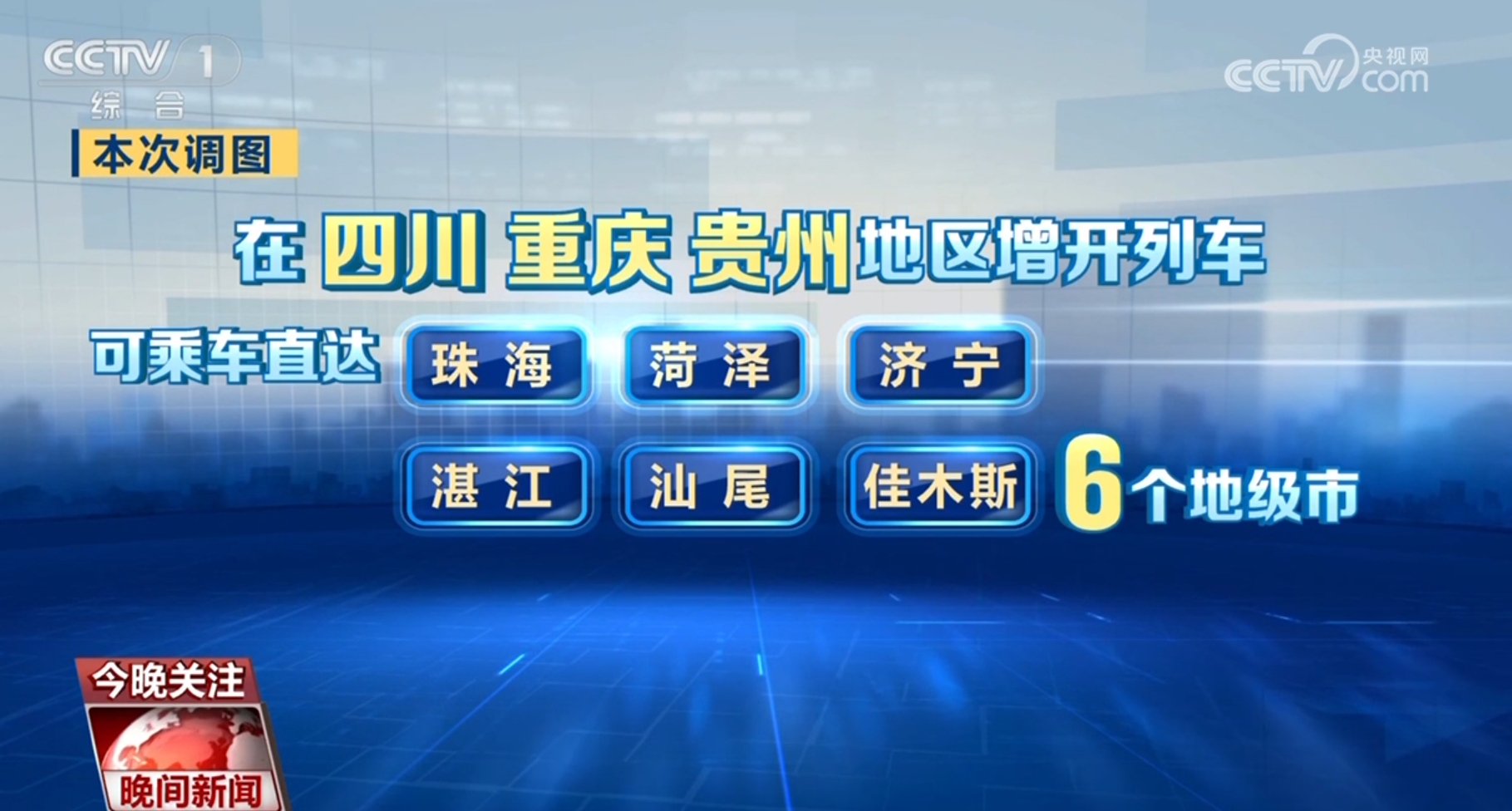 本次調(diào)圖,在鄭州、武漢、長(zhǎng)沙等城市間增開復(fù)興號(hào)動(dòng)車組標(biāo)桿列車28列,進(jìn)一步壓縮了中部地區(qū)省會(huì)城市間的時(shí)空距離;在四川重慶貴州地區(qū)增開列車,旅客從川渝貴三地可乘車直達(dá)珠海、菏澤、濟(jì)寧、湛江、汕尾、佳木斯6個(gè)地級(jí)市。此外,首開太原至深圳的動(dòng)車組列車,旅行時(shí)間為8小時(shí)17分,較普速旅客列車壓縮了27小時(shí)57分。