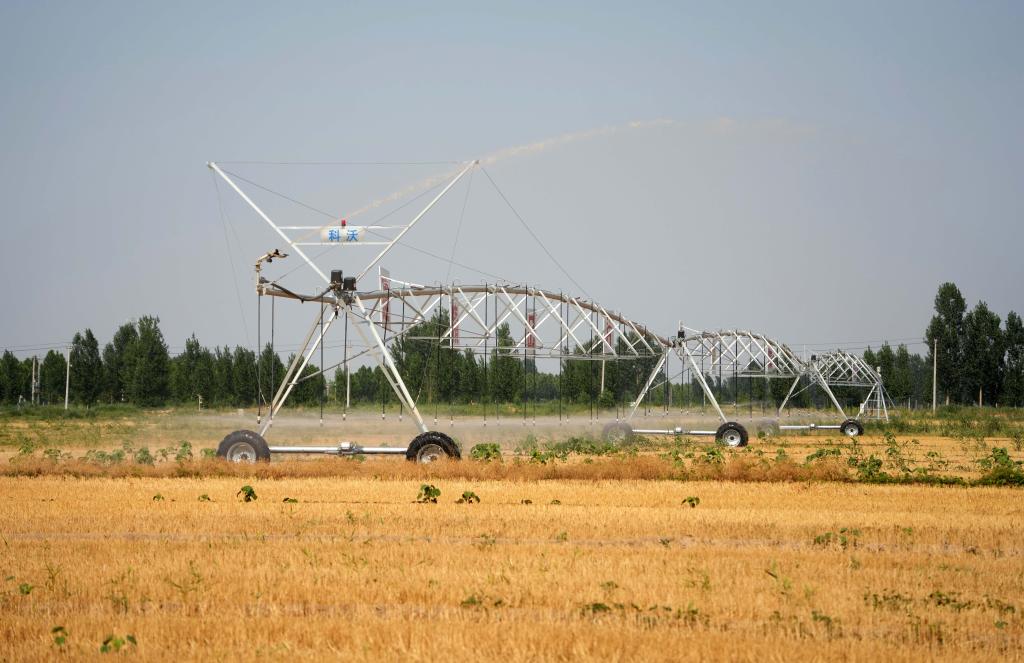 指針式噴灌機(jī)、地埋式噴灌設(shè)備、新式出水閥,在山東得益農(nóng)業(yè)科技股份有限公司的高標(biāo)準(zhǔn)農(nóng)田里,這些灌溉“標(biāo)配”齊上陣,讓夏灌保墑比以往省心省力。