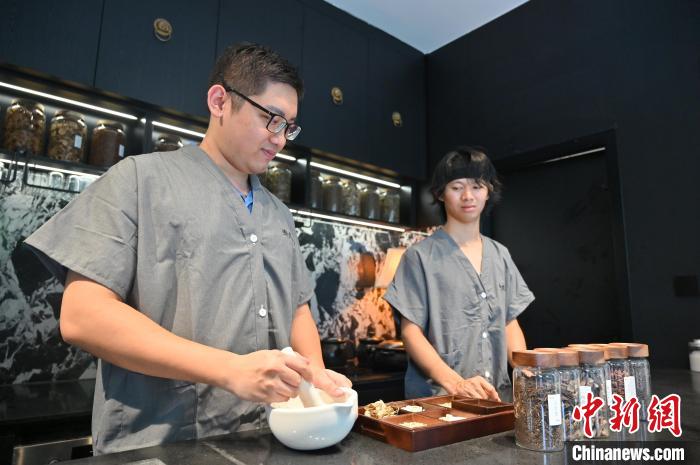 “我們通過在休息區(qū)增設(shè)了‘中醫(yī)和你聊會兒天’項(xiàng)目,顧客能在聽歌、品藥膳的過程中體驗(yàn)把脈,以親和的方式,讓客人享受單獨(dú)診療咨詢服務(wù)?!痹撛\所負(fù)責(zé)人甘斌介紹,新潮中醫(yī)館搭建新社交場景,讓民眾隨時感受中醫(yī)文化。在有著十五年從醫(yī)經(jīng)驗(yàn)的他看來,“舊與新”的碰撞讓中醫(yī)文化變新潮,養(yǎng)生也能很“酷”。