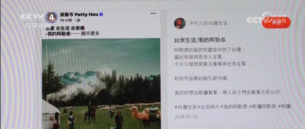 從廣袤無(wú)垠的戈壁沙漠到壯麗的天山山脈,再到碧綠的喀納斯湖,新疆的雄偉壯觀的自然美景和豐富多樣的人文風(fēng)情在臺(tái)灣經(jīng)常通過(guò)各類旅游論壇、網(wǎng)紅游記的分享廣為傳播。而這段時(shí)間新疆旅游之所以在臺(tái)灣更加火爆,不得不提的就是這部在臺(tái)灣也引發(fā)很多關(guān)注的電視劇《我的阿勒泰》。在社交媒體上有臺(tái)灣劇迷分享追劇感想,也引來(lái)大陸網(wǎng)友熱情分享新疆的美景美食。