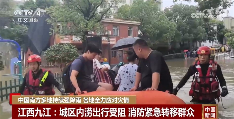 23日,江西九江遭遇強降雨,城區(qū)出現(xiàn)積水內澇,部分路段積水深超一米,居民出行受到影響。當?shù)叵谰仍藛T利用橡皮艇幫助群眾轉移,同時,消防救援人員使用浮艇泵,連接水帶,開展排水作業(yè)。