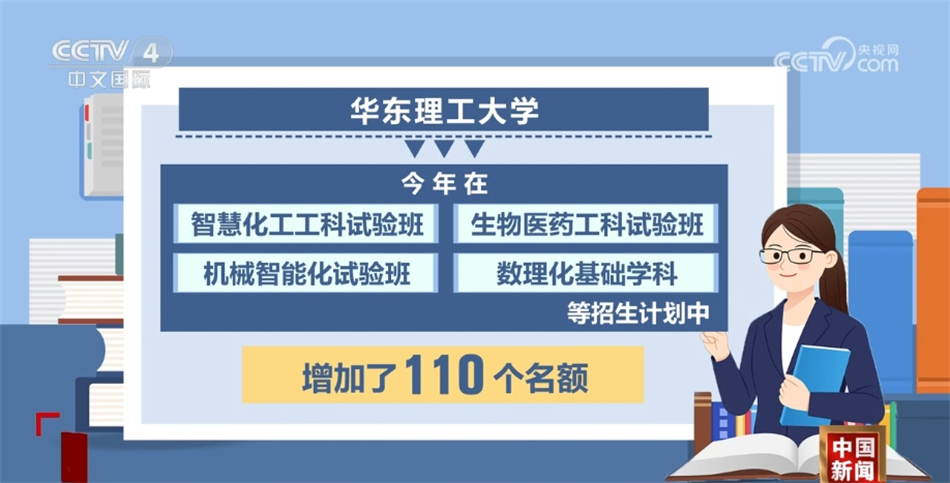 華東理工大學(xué)本科生招生辦公室主任孫玉柱介紹:“增加招生計(jì)劃的專業(yè)主要集中在理工類專業(yè),主要是我校優(yōu)勢(shì)專業(yè)和熱門專業(yè),這也恰恰是國(guó)家對(duì)攻克關(guān)鍵技術(shù)領(lǐng)域“卡脖子”技術(shù)需求和對(duì)高端人才需求比較迫切的學(xué)科和領(lǐng)域,而且今后幾年,我校還將持續(xù)增加理工類招生專業(yè)的規(guī)模和比例。”