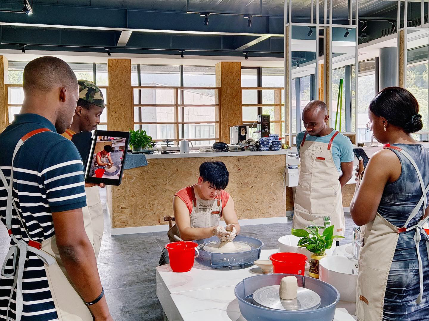 謝華:一開始的時候?qū)W生非常有趣,他說老師你會不會武功,所以我就把它創(chuàng)作在歌詞里。我告訴他,我們講究的是“天行健,(君子以)自強不息”,教他們中國人的行為準則方式是“己所不欲,勿施于人”。他們自己也表達說,要讓非洲也有高鐵、快遞、北斗,所以我們就把這個歌詞自然而然地寫在《我和我的漢語老師》里了。