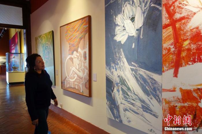 資料圖:當(dāng)?shù)貢r(shí)間2016年11月18日,利馬,一名秘魯女觀眾觀看APEC“人與自然”藝術(shù)展。11月16日,為期23天的“感知中國走進(jìn)秘魯——APEC‘人與自然’藝術(shù)展”在秘魯國家考古人類學(xué)歷史博物館舉辦。 中新社記者 莫成雄 攝