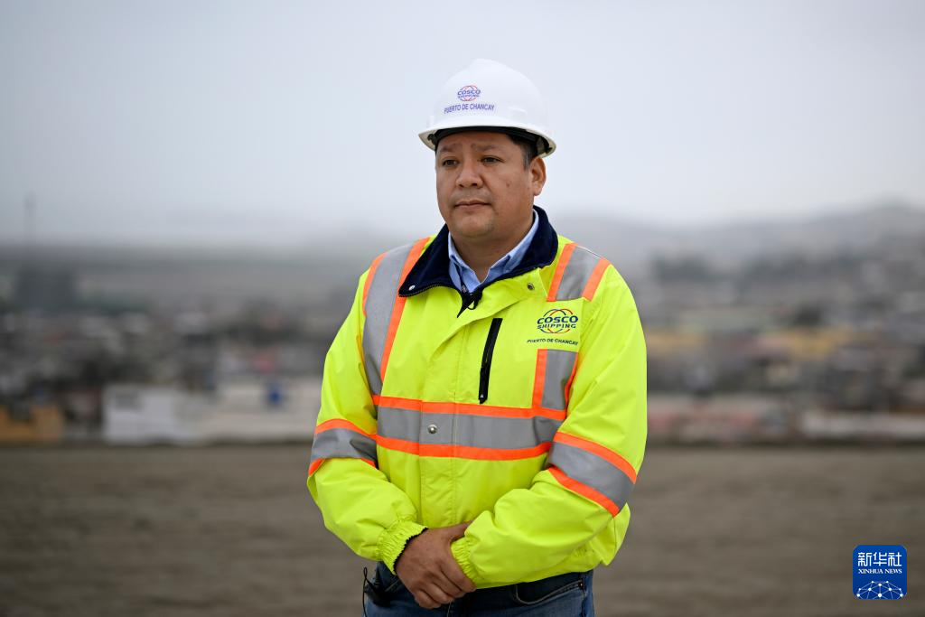 6月21日,在秘魯錢凱港,錢凱港項(xiàng)目工程部副經(jīng)理戴維·加梅羅接受新華社記者采訪。 新華社記者 李木子 攝