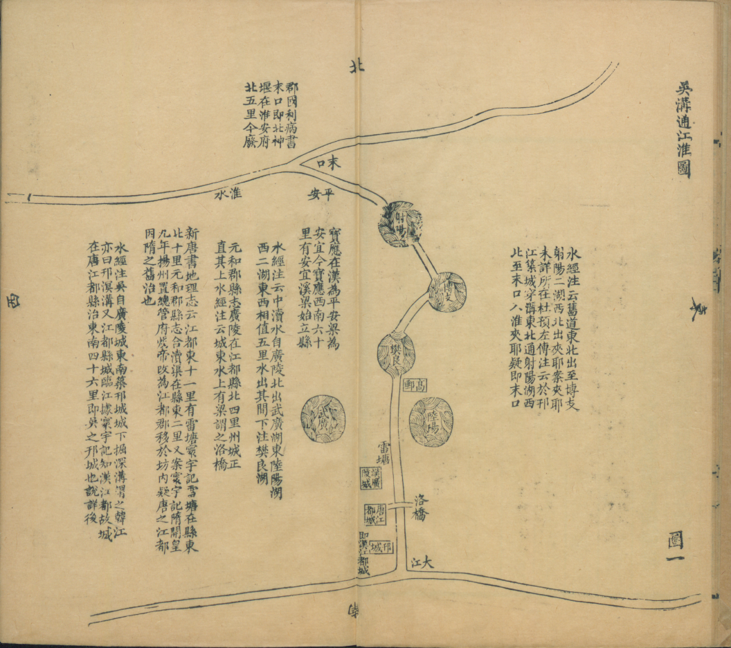 《邗溝故道歷代變遷圖說》(清)徐庭曾撰清光緒三十年(1904)刻本一書,曾以地圖的形式展示了邗溝故道以及歷史上的七次變遷。八幅運河圖,圖版詳實,文字簡明,還標(biāo)注出了水道的變化。