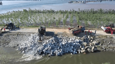今天凌晨,總臺記者在現(xiàn)場看到有武警、消防、民兵等救援力量和很多大型設(shè)備車輛。記者了解到,5日晚,決堤口已延伸至約100米,今天凌晨,決堤口已經(jīng)延伸至約150米。