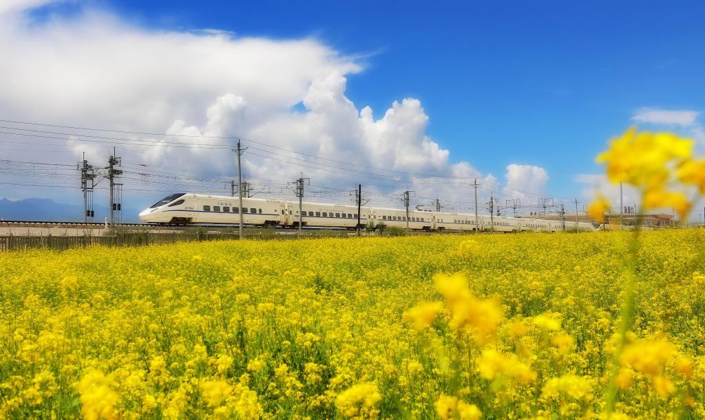 2014年12月26日,青藏高原首條高速鐵路蘭(州)新(疆)高鐵開通運營,時速200公里左右的動車組列車讓遙遠的地方不再遙遠。