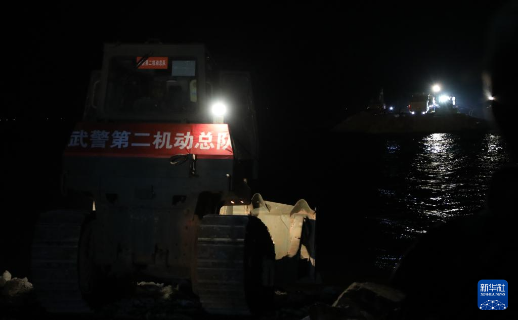 已是7日凌晨三點(diǎn),武警第二機(jī)動總隊二級上士李貴權(quán)左手揮著紅色指揮旗,右手握著手電,指揮推土機(jī)把一塊塊大石料推進(jìn)決口處。