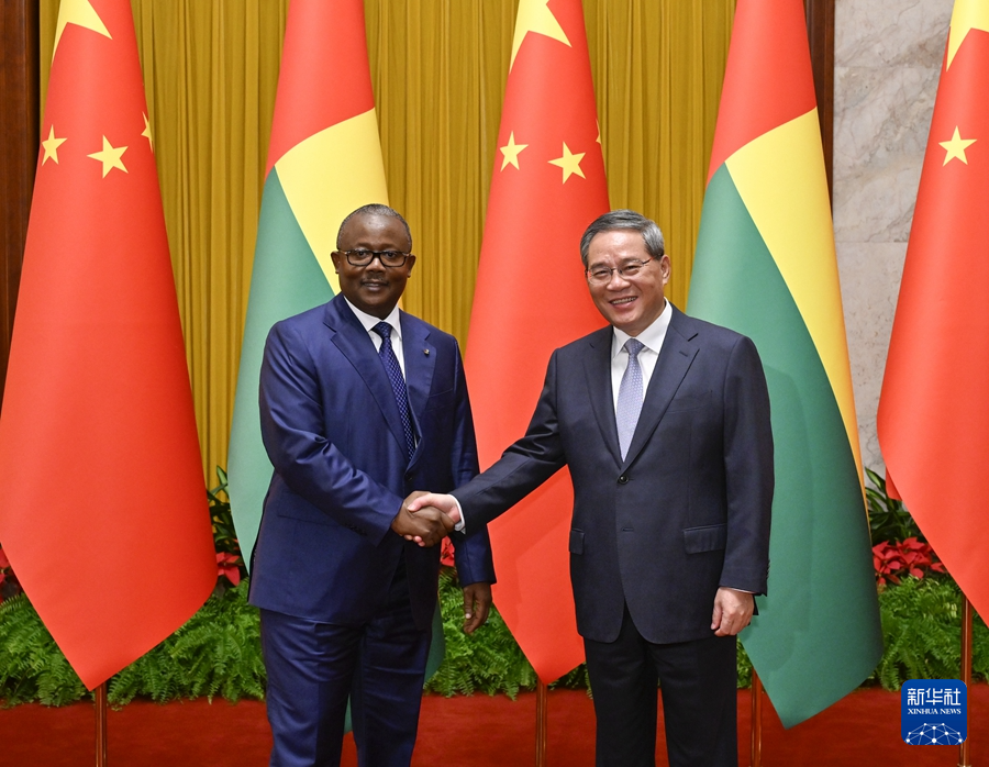 7月10日上午,國務(wù)院總理李強(qiáng)在北京人民大會(huì)堂會(huì)見來華進(jìn)行國事訪問的幾內(nèi)亞比紹總統(tǒng)恩巴洛。新華社記者 殷博古 攝