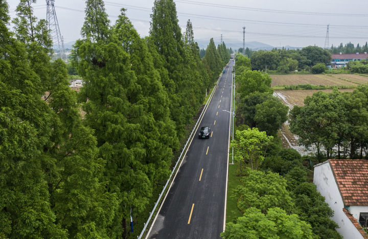 在浙江省諸暨市趙家鎮(zhèn)上京村拍攝的改造提升后的縣道(2024年6月4日攝,無人機(jī)照片)。新華社記者 徐昱 攝