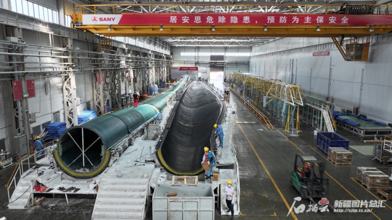 7月12日,在新疆塔城重點(diǎn)開發(fā)開放試驗(yàn)區(qū)先行發(fā)展區(qū),三一(塔城)風(fēng)電設(shè)備有限公司葉片生產(chǎn)現(xiàn)場。代姣美攝