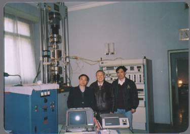 20世紀(jì)80年代在華東石油學(xué)院試驗室與研究生進行海洋鋼結(jié)構(gòu)疲勞試驗(中為方華燦)。新華社發(fā)